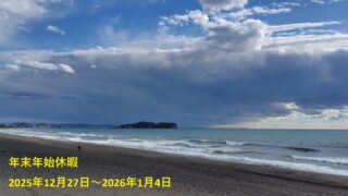 2025年12月27日(土)~2026年1月4日(日)を年末年始休暇とさせていただきます。本年中のご愛顧に心より御礼申し上げますとともに、来年も変わらぬお引き立てのほどよろしくお願い申し上げます。